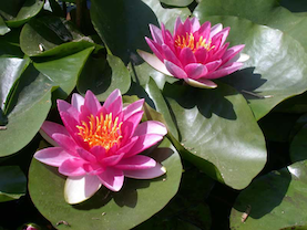 Plants that grow mostly submerged or possibly with leaves and flowers emerging from water. Most will survive temperate zone winters if the water does not freeze all the way to the bottom of the pond or pool.